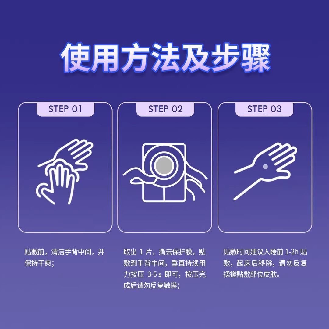 3️⃣貼敷時間建議入睡前 1-2h貼垂直敷,起床後移除,請勿反復揉搓貼敷部位皮膚